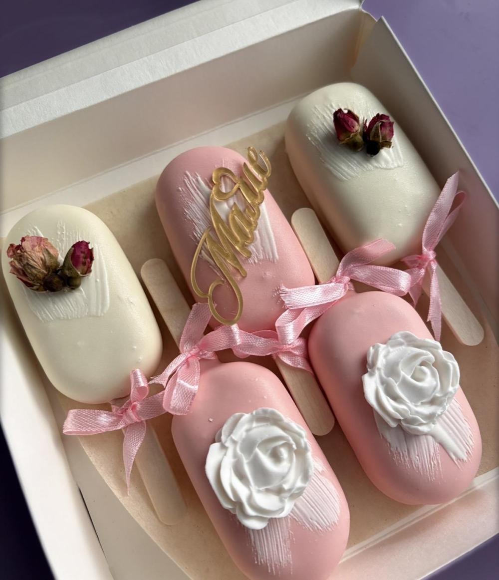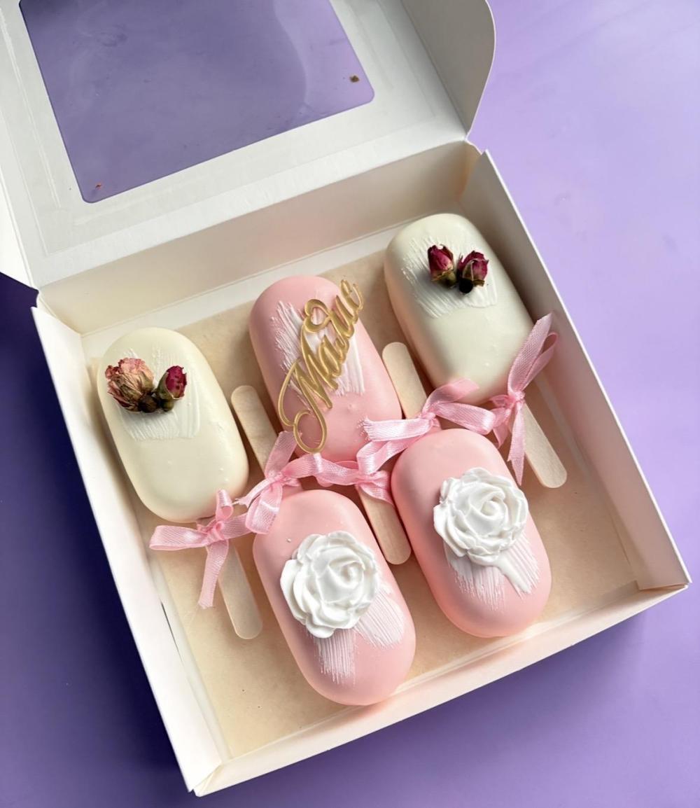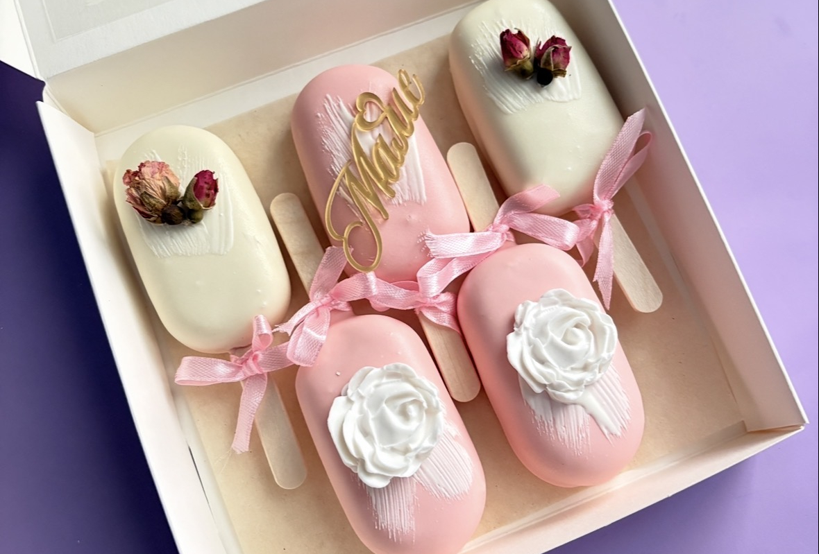 Необычные муссовые пирожные эскимо на палочке подойдут для подарка любимой маме.